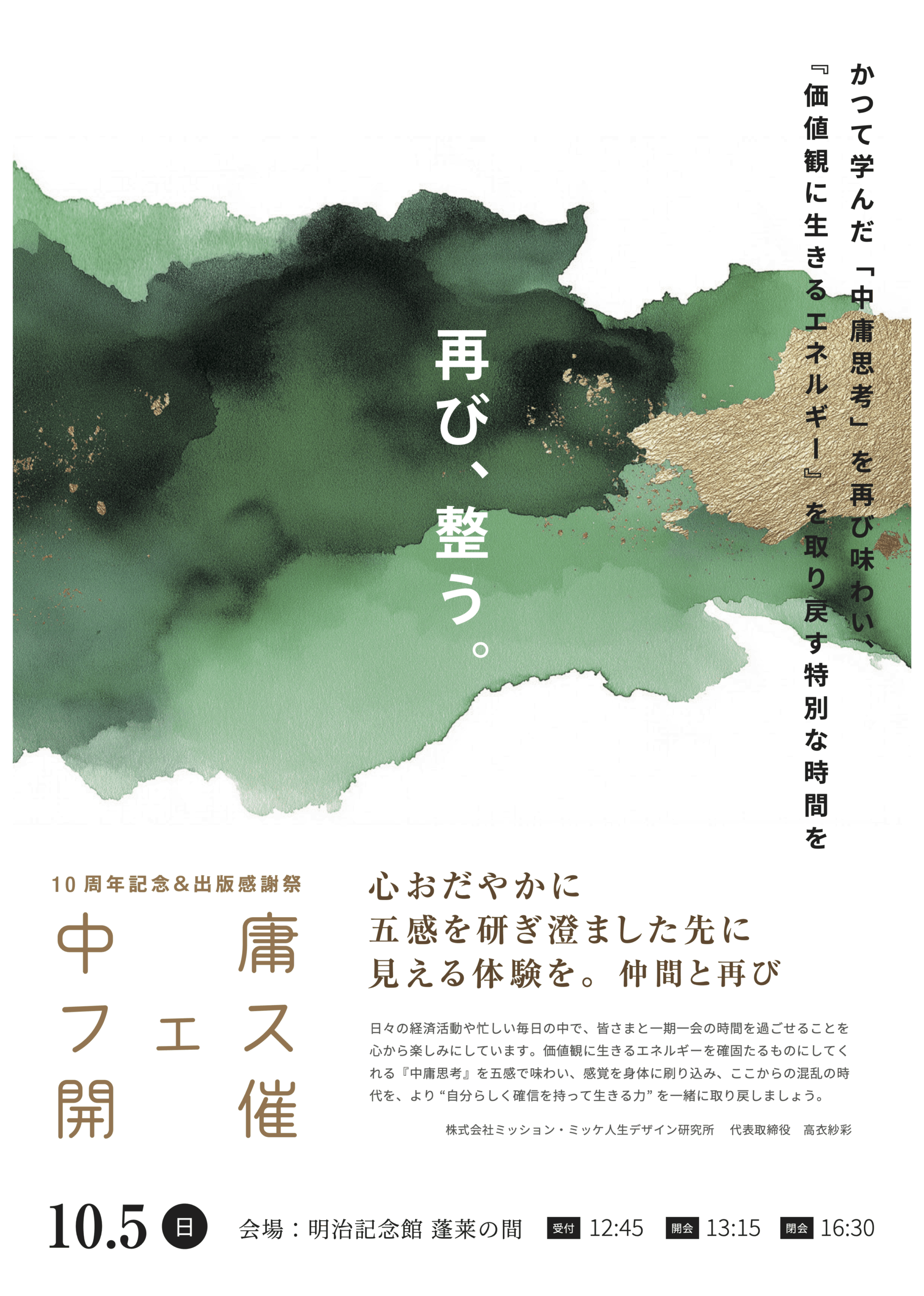 JDS創立10周年という節目、新刊『偏らない生き方』の出版、そして日本古来の知恵と西洋の芸術が一堂に会する奇跡のような機会。この全てが重なり合うことで、「中庸」という言葉の意味が、頭ではなく“体験”として刻まれるはずです。